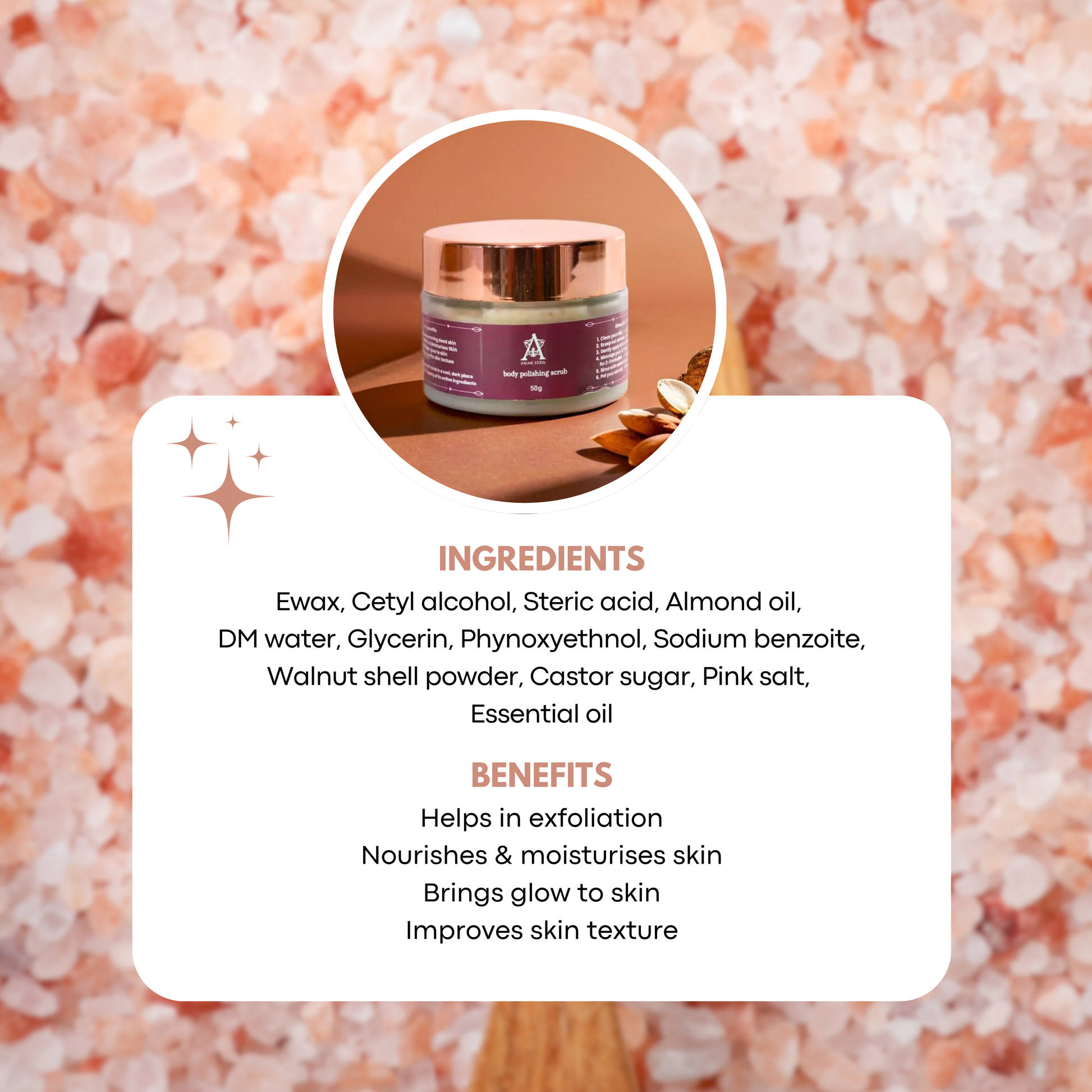 Experience the ultimate skin renewal with Amarveda’s Body Polishing Scrub. Designed to exfoliate, nourish, and brighten, this luxurious scrub blends Walnut Shell Powder and Castor Sugar for gentle yet effective exfoliation. Almond Oil deeply hydrates, while Pink Salt detoxifies and rejuvenates for a refreshed, radiant glow. Achieve smooth, even-toned skin with every use!